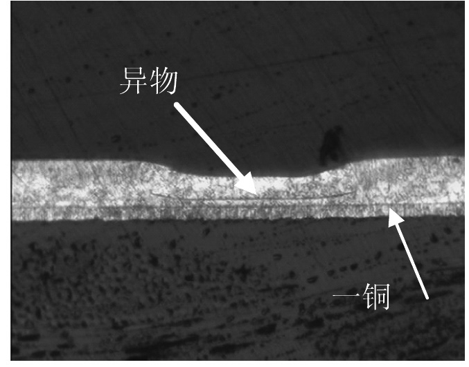 對凹坑處進行金相剖切,如圖2所示,可看出凹坑處二銅電鍍不全,有的甚至未鍍上二銅。