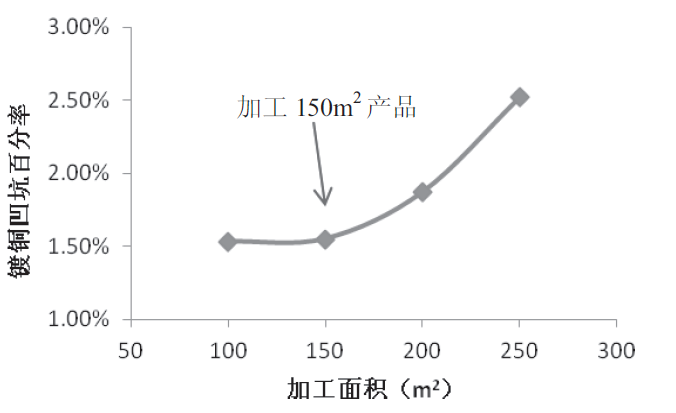 圖6 加工面積與鍍銅凹坑百分率趨勢圖