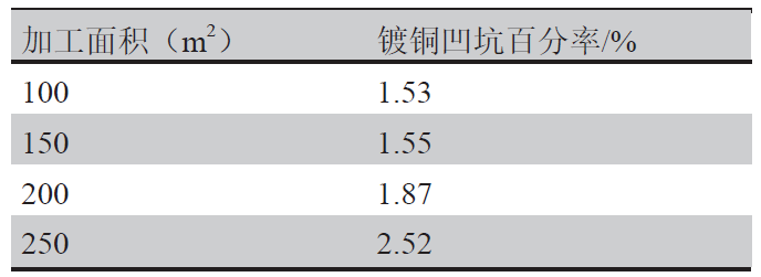 表1 顯影液加工面積對鍍銅凹坑的影響