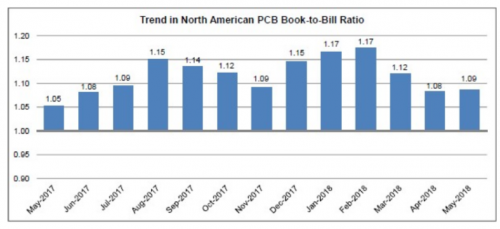 2018年7月4日,美國伊利諾伊州班諾克本 — IPC — 國際電子工業(yè)聯(lián)接協(xié)會? 發(fā)布了《2018年5月份北美地區(qū)PCB行業(yè)調(diào)研統(tǒng)計報告》。報告顯示5月份北美PCB訂單量和出貨量均以強勁的速度增長。